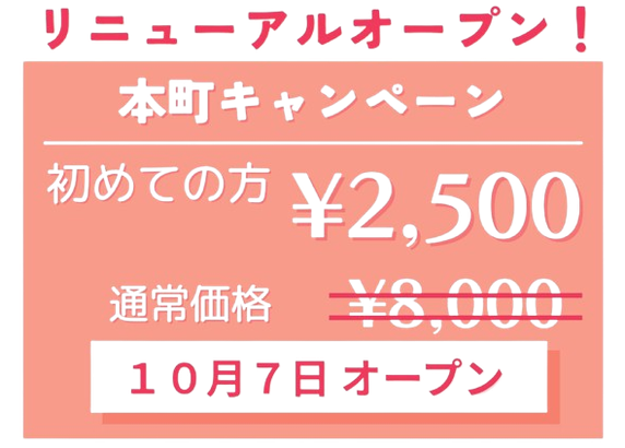 初めての方は、お電話または、メール(24時間受付)にてご予約をお願いします。